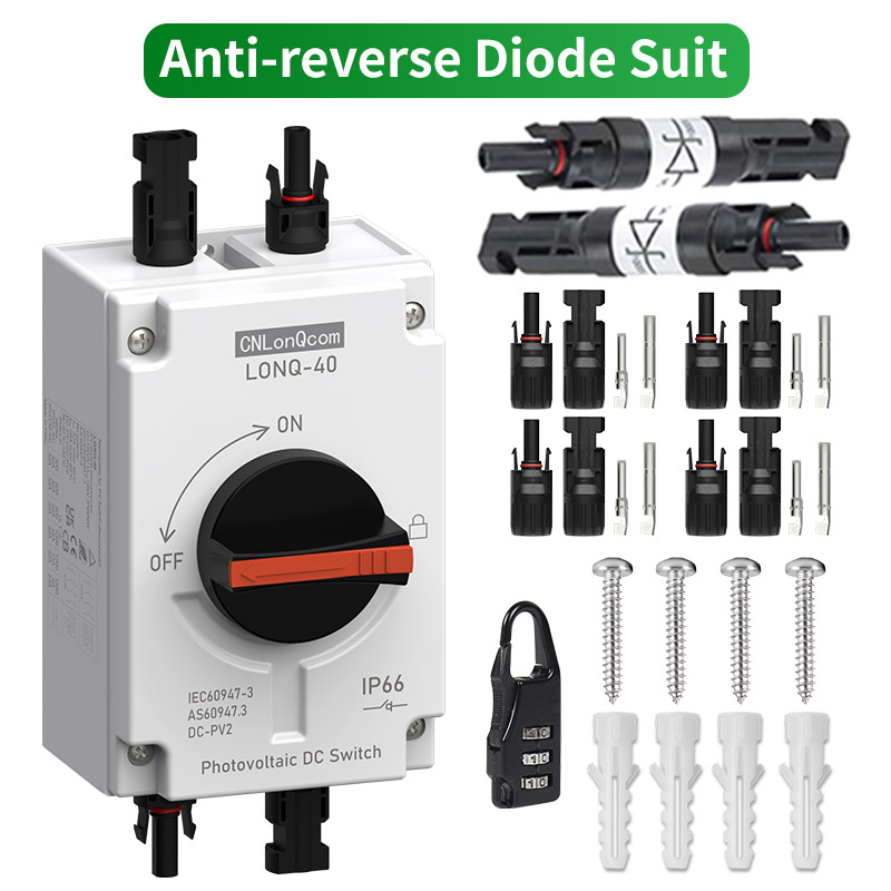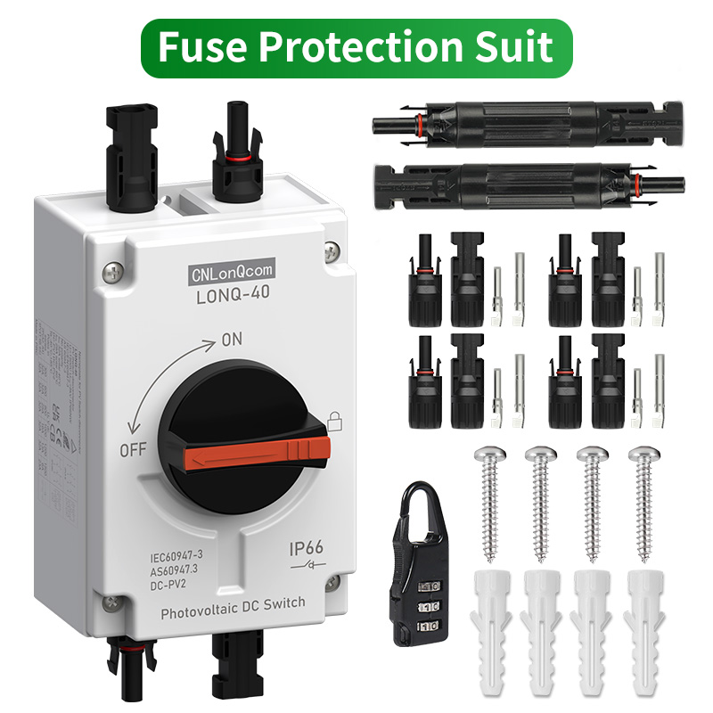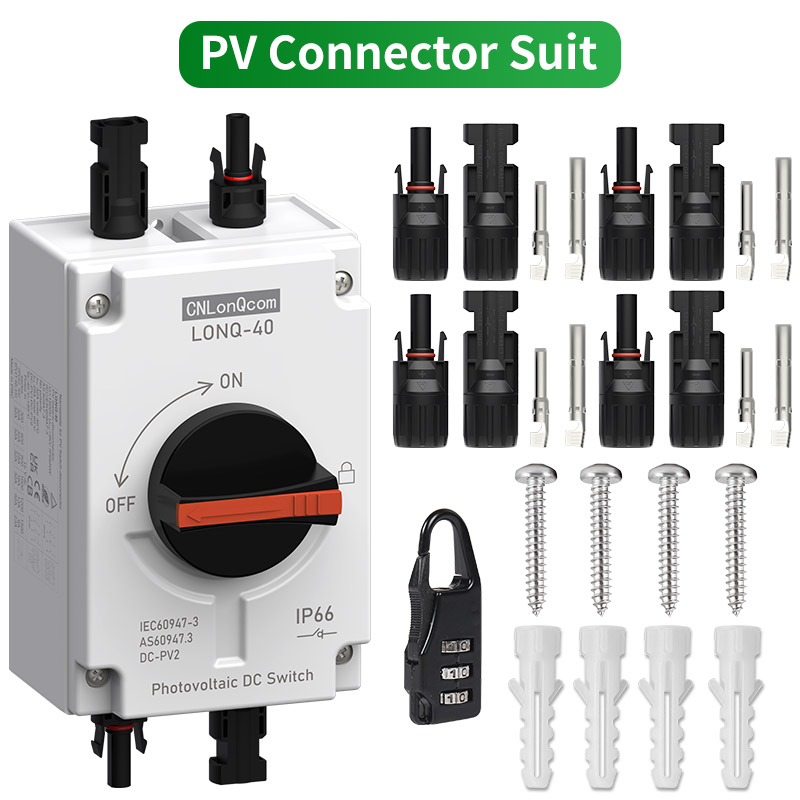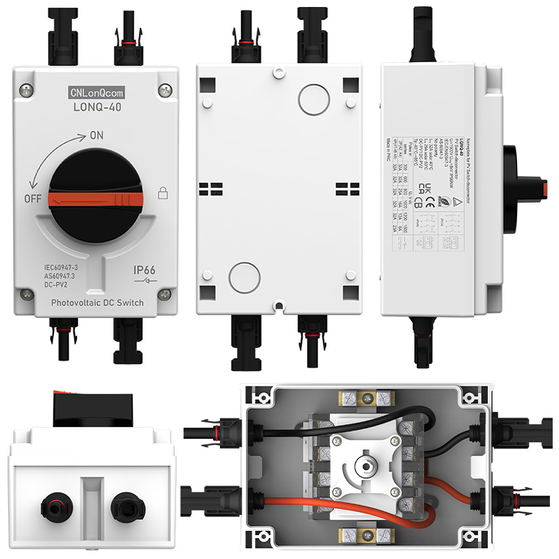 ● CNLonQcom - 1500В 32А дейінгі PV қосқыш-айырғыштарын өндіруге маманданған өндіруші, 1 кВт-тан 20 кВт-қа дейінгі тұрғын үй немесе коммерциялық фотоэлектрлік жүйелерге арналған. Бұл қосқыштар күн батареялары мен заряд реттегіштері, күн панельдері мен инверторлар арасында немесе күн батареяларының арасында орнатуға арналған.